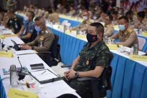 ขณะที่ พลเรือตรี สมเกียรติ ผลประยูร เลขาธิการศูนย์อำนวยการบริหารจังหวัดชายแดนภาคใต้ กล่าวว่า ในภาพรวมขณะนี้สถานการณ์ในพื้นที่จังหวัดชายแดนภาคใต้ดีขึ้น ถึงแม้จะมีเหตุรุนแรงเกิดขึ้นอยู่ในพื้นที่ แต่สิ่งที่สัมผัสได้คือความหวาดระแวงความกังวลต่างๆเริ่มคลายตัวลง เริ่มเห็นการเติบโตของเศรษฐกิจในพื้นที่เป็นสัญญาณที่บอกว่าสถานการณ์เริ่มคลายตัว มีจำนวนนักท่องเที่ยวเดินทางเข้ามาในพื้นที่จำนวนมากขึ้น แม้จะอยู่ในช่วงของสถานการณ์โรคโควิด 19 ระบาด ผลมาจากการทำงานอย่างหนักโดยการนำของแม่ทัพภาคที่ 4 ผู้บัญชาการกองกำลังตำรวจจังหวัดชายแดนภาคใต้ รวมถึงส่วนราชการทุกภาคส่วนร่วมกันขับเคลื่อนซึ่งศูนย์อำนวยการบริหารจังหวัดชายแดนภาคใต้มีหน้าที่ ในการพัฒนาคุณภาพชีวิต เป็นศูนย์กลางในการประสานงานการทำงาน มีความมุ่งหมายคือการพัฒนาให้พี่น้องประชาชนในพื้นที่มีคุณภาพชีวิตที่ดีขึ้น เช่นเดียวพี่น้องประชาชนในภูมิภาคอื่นๆของประเทศไทย เพื่อลดความเหลื่อมล้ำ และเสริมความมั่นคง พัฒนาทรัพยากรมนุษย์ พัฒนาด้านเศรษฐกิจ และพัฒนาสังคม และปรับระบบการบริหารจัดการหน่วยงานภาครัฐ ซึ่งทั้งหมดอยู่ในกรอบยุทธศาสตร์ชาติ ตามนโยบายของรัฐบาล โดยเฉพาะการเสริมความมั่นคง โดยมีสภาสันติสุขตําบลในการเข้าถึงปัญหาต่างๆของประชาชน หรือการเสริมความมั่นคงด้านการอำนวยความเป็นธรรมหรือคลายทุกข์ที่ต้นทาง รับเรื่องราวร้องทุกข์ผ่านหมายเลขโทรศัพท์ 1880 รับเรื่อง และส่งต่อแนะนำประสานงานการแก้ไข ซึ่งทำให้เกิดการคลายทุกข์ในเบื้องต้น นอกจากนี้ยังมีเรื่องการเยียวยาผู้ที่ได้รับผลกระทบจากเหตุความไม่สงบในพื้นที่ การทำงาน 6 เดือนที่ผ่านมาสามารถเช็คได้ทุกครัวเรือนผ่านระบบออนไลน์เพื่อดูแลทุกเดือน สำหรับปัญหาที่กระทบด้านความมั่นคงเรื่องที่ดินทำกินของประชาชนในพื้นที่ที่ประสบปัญหาในหลายพื้นที่ เช่นเดียวกับผลกระทบด้านสถานการณ์การแพร่ระบาดของโรคโควิด 19 ที่มีพี่น้องประชาชนเดินทางเข้ามาในประเทศจำนวน 20,000 กว่าคน ได้สำรวจโดยละเอียดและจัดทำระบบออนไลน์ ซึ่งกำลังเร่งดำเนินการให้ครอบคลุมทุกครัวเรือน นอกจากนี้ยังมีปัญหาผลกระทบที่เกิดขึ้นคือโรคระบาดที่เกิดขึ้นในยางพาราโดยเฉพาะในพื้นที่จังหวัดนราธิวาส มีการระบาดไปแล้วจำนวน เจ็ดแสนกว่า ไร่ ส่งผลให้ต้นยางพารายืนต้นตาย ได้ทำงานร่วมกันกับการยางแห่งประเทศไทยเข้ามาช่วยเหลือเกษตรกรชาวสวนยาง นอกจากนี้ยังมีโรงงานแปรรูปมะพร้าวอย่างครบวงจรซึ่งขณะนี้อยู่ในระหว่างการดำเนินการซึ่