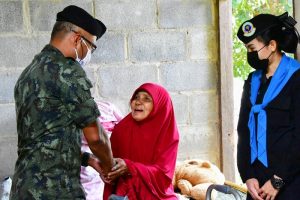 พันเอกนายแพทย์ โชคชัย ขวัญพิชิต รองผู้อำนวยการศูนย์อำนวยการแพทย์จังหวัดชายแดนภาคใต้ ร่วมกับ หน่วยเฉพาะกิจกรมทหารพรานที่ 30, ผู้ใหญ่บ้าน, ผู้นำชุมชน, อาสาสมัครสาธารณสุขประจำหมู่บ้าน และบัญฑิตอาสาในพื้นที่ พบปะเยี่ยมเยียน นางแยนะ อุเซ็ง อายุ 66 ปี ผู้ป่วยติดบ้าน อาศัยอยู่ที่บ้านเลขที่ 165/4 บ้านตือระ หมู่ที่ 8 ตำบลบันนังสตา อำเภอบันนังสตา จังหวัดยะลา เพื่อเยี่ยมเยียนให้กำลังใจ และให้การช่วยเหลือแก่ผู้ป่วยติดบ้าน รวมทั้งเพื่อเป็นการบรรเทาทุกข์เบื้องต้น และรับฟังปัญหาความต้องการ รวมทั้งให้คำแนะนำและเสนอแนะวิธีการดูแลผู้ป่วยติดบ้าน