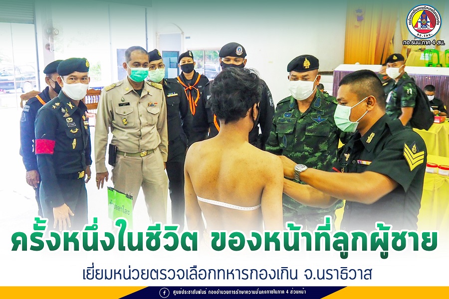 พลตรีไพศาล หนูสังข์ ผู้บัญชาการกองพลทหารราบที่ 15 / ผู้บังคับหน่วยเฉพาะกิจนราธิวาส เดินทางลงพื้นที่ ตรวจเยี่ยมการตรวจเลือกทหารกองเกินเข้ากองประจำการ ประจำปี 2564 ณ สถานที่ตรวจเลือก ศาลาอุปการประชากรสวนกาญจนาภิเษก อ.รือเสาะ จ.นราธิวาส โดยมี พันโท นพดล พรหมมาก ผู้บังคับกองพันทหารราบที่ 3 กรมทหารราบที่ 153 /ประธานการตรวจเลือก, กำนัน และผู้ใหญ่บ้าน ให้การต้อนรับ เพื่อให้เป็นไปตามนโยบายและให้เกิดความบริสุทธิ์ยุติธรรม สร้างภาพลักษณ์ที่ดีของหน่วยทหาร สร้างความเชื่อมั่นแก่พี่น้องประชาชน โดยบรรยากาศเป็นไปอย่างเรียบร้อย มีชายไทยที่มีหมายเรียกตามเกณฑ์เข้ารับคัดเลือกเข้าเป็นทหารกองประจำการทยอยมาอย่างต่อเนื่อง รวมไปถึงบรรดาพ่อ แม่ ครอบครัว เพื่อน ๆ มาคอยให้กำลังใจเป็นจำนวนมาก
