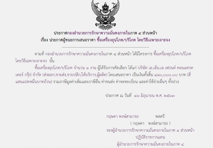 ประกาศผู้ชนะการเสนอราคา ซื้อเครื่องอุปโภค/บริโภค โดยวิธีเฉพาะเจาะจง(๒)