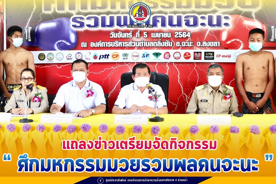 วันนี้ (5 เมษายน 2564) เวลา 14.00 น. ณ องค์การบริหารส่วนตำบลตลิ่งชัน อำเภอจะนะ จังหวัดสงขลา นายนิพนธ์ บุญญามณี รัฐมนตรีช่วยว่าการกระทรวงมหาดไทย เป็นประธานการแถลงข่าวการจัดกิจกรรม “ศึกมหกรรมมวยรวมพลคนจะนะ” พร้อมด้วย พลเรือตรี สมเกียรติ ผลประยูร เลขาธิการศูนย์อำนวยการบริหารจังหวัดชายแดนภาคใต้ (ศอ.บต) นายวรณัฏฐ์ หนูรอด รองผู้ว่าราชการจังหวัดสงขลา นางสาวปรินดา ปาลาเร่ เลขานุการนายกองค์การบริหารส่วนจังหวัดสงขลา ร่วมแถลงข่าว โดยมี ส่วนราชการ ภาคเอกชนที่เกี่ยวข้องรวมถึงสื่อมวลชนทุกแขนงเข้าร่วมในกิจกรรมแถลงข่าว