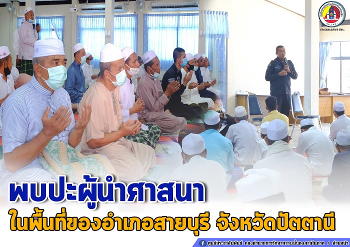 เมื่อวันที่ 24 ก.ค.63 เวลา 08.30 น. ผู้บังคับหน่วยพาะกิจกรมทหารพรานที่ 44 และ นายอำเภอสายบุรี ร่วมกิจกรรมพบปะอิหม่าม คอเต็บ บิหลั่น ในพื้นที่อำเภอสายบุรี จังหวัดปัตตานี เพื่อพูดคุยหารือ ร่วมกันคิด ร่วมกันทำ ร่วมกันแสวงหาแนวทางการป้องกันและขจัดปัญหาในพื้นที่ โดยขอความร่วมมือผู้นำศาสนาในการช่วยขับเคลื่อนเยาวชนให้เข้าใจหลักศาสนาที่ถูกต้อง มีความตระหนักถึงโทษของยาเสพติด เพื่อห่างไกลจากพิษภัยของยาเสพติด และเกิดการเปลี่ยนแปลงทั้งตัวเอง สามารถพัฒนาตนเอง ชุมชน สังคม และประเทศชาติ โดยเน้นมัสยิดเป็นจุดศูนย์กลางในการแก้ไขปัญหา
