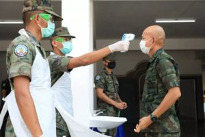 โดยปัจจุบัน ได้จัดเตรียมพื้นที่หน่วยทหารจำนวน 10 แห่ง พร้อมบุคลากรแพทย์ทหาร สนับสนุนจัดตั้งเป็นโรงพยาบาลสนาม จำนวนกว่า 3,000 เตียง ในพื้นที่ กรุงเทพมหานคร และปริมณฑล ทั้งนี้ ทุกเหล่าทัพอยู่ระหว่างทำการสำรวจเพิ่มเติม เพื่อพัฒนาหน่วยทหารให้เป็นพื้นที่จัดตั้งโรงพยาบาลสนาม รองรับสถานการณ์การแพร่ระบาดของโรคที่อาจรุนแรงและขยายตัวเป็นวงกว้างขึ้นต่อไป