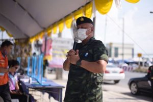 วันนี้ 9 เมษายน 2564 เวลา 16.00 น. พลโท เกรียงไกร ศรีรักษ์ แม่ทัพภาคที่ 4 /ผู้บัญชาการศูนย์ปฏิบัติการกองทัพภาคที่ 4 เดินทางตรวจเยี่ยมให้กำลังใจเจ้าหน้าที่ปฏิบัติงานจุดบริการประชาชนเส้นทาง สุราษฎร์ฯ-นครศรีฯ ฝั่งขาเข้าบริเวณถนนหน้าโรงพยาบาลท่าศาลา อำเภอท่าศาลา จังหวัดนครศรีธรรมราช ที่เป็นจุดให้บริการ อำนวยความสะดวกให้กับประชาชนผู้ใช้เส้นทางในช่วงเทศกาลสงกรานต์ ระหว่างวันที่ 9 – 18 เมษายน 2564 นี้ โดยได้มอบแนวทางการปฏิบัติงาน การบริการพี่น้องประชาชนด้วยหัวใจที่เป็นจิตอาสา เสียสละ พร้อมเน้นย้ำให้กำลังพลเจ้าหน้าที่ปฏิบัติตามมาตรการ ป้องกันการแพร่ระบาดของเชื้อไวรัส covid-19 อย่างเคร่งครัด โดยให้กำลังพลทุกนายที่ปฏิบัติหน้าที่เป็นตัวอย่างที่ดีให้กับพี่น้องประชาชน และขอความร่วมมือพี่น้องประชาชนผู้ใช้รถใช้ถนน ปฏิบัติตามข้อกำหนดของศูนย์อำนวยการป้องกันและลดอุบัติเหตุทางถนนอย่างเคร่งครัดเพื่อความปลอดภัยสูงสุด โดยแม่ทัพภาคที่ 4 ได้มอบเครื่องดื่ม อาหารว่างและอุปกรณ์ป้องกันตนเอง ให้กับกำลังพลที่ปฏิบัติหน้าที่ประจำจุดบริการประชาชน เพื่อเป็นขวัญและกำลังใจในการปฏิบัติงานในห้วงเทศกาลสงกรานต์ให้เกิดความปลอดภัยสูงสุด