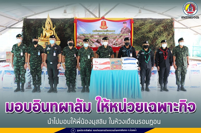 วันนี้ ( 11 เมษายน 2564 ) เวลา 09.00 น. ที่ หน่วยเฉพาะกิจยะลา ตำบลเขาตูม อำเภอยะรัง จังหวัดปัตตานี พลตรี อุทิศ อนันตนานนท์ ผู้บังคับหน่วยเฉพาะกิจยะลา เป็นประธานในพิธีมอบอินทผาลัมและสิ่งของอุปโภค-บริโภค ให้แก่หน่วยเฉพาะกิจในพื้นที่ เพื่อนำไปมอบให้กับผู้ยากไร้ ผู้นำศาสนา ผู้นำชุมชน และพี่น้องชาวไทยมุสลิม ไว้ใช้ละศีลอดในห้วงเดือนรอมฎอน มีหน่วยเฉพาะกิจในพื้นที่เข้ารับมอบโดยพร้อมเพรียง