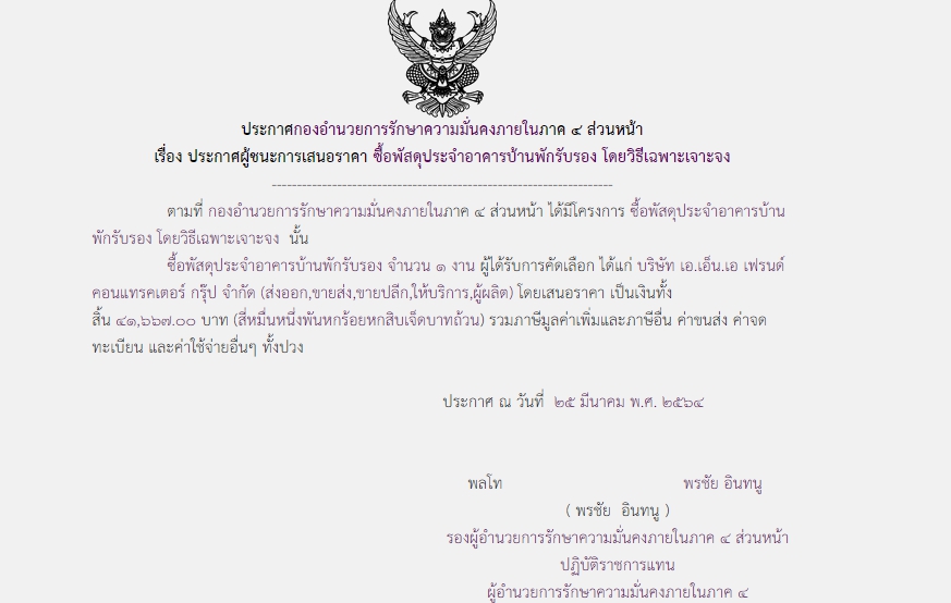 จัดซื้อ จัดจ้างประกาศผู้ชนะการเสนอราคา ประกาศผู้ชนะการเสนอราคา ซื้อพัสดุประจำอาคารบ้านพักรับรอง โดยวิธีเฉพาะเจาะจง ( ๔๑,๖๖๗.๐๐ บาท ) April 12, 2021 817 Share Facebook Twitter Google+ Telegram LINE กอ.รมน.ภาค ๔ สน.