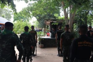 จากนั้นไป ตรวจเยี่ยมชุดคุ้มครองตำบลคลองกวาง เพื่อติดตามการปฏิบัติงาน เพื่อย้ำมาตรการป้องกันฐาน อย่าประมาท และจะต้องมีเวรยามรักษาการตลอด 24 ชั่วโมง พร้อมมอบสิ่งของเพื่อเป็นขวัญกำลังใจ และมอบเครื่องอุปโภคบริโภคให้กับกำลังพล เพื่อใช้ละศีลอด ในห้วงเดือนรอมฎอน ในช่วงบ่าย พลตรี ศานติ ศกุนตนาค ผบ.พล.ร.5/ผบ.ฉก.สงขลา ได้เดินทางตรวจเยี่ยม ชุดคุ้มครองตำบลลำไพล อ.เทพา เน้นย้ำให้ ผู้บังคับหน่วยต้องกำกับดูแลการปฏิบัติงานในภาพรวมของหน่วย ให้เกิดความเรียบร้อย เพื่อทำให้พื้นที่เกิดความปลอดภัยสูงสุด ก่อนไปยัง จุดตรวจนาจวก เพื่อติดตามการปฏิบัติ โดยเฉพาะห้วงเวลากลางคืน โดยให้จัด ชุดปฏิบัติการนอนนอกฐาน พร้อมลาดตระเวนพื้นที่รอบฐานปฏิบัติการอยู่เสมอ จากนั้นไป ตรวจเยี่ยม หมวดปืนเล็กที่ 3 ร้อย.ร.2534 บ.ควนติหมุน ต.ปากบาง อ.เทพา จ.สงขลา ย้ำการใช้ ชุดปฏิบัติการจรยุทธ์ ควบคุมพื้นที่ให้ได้ตลอด 24 ชั่วโมงโดยเฉพาะห้วงเวลากลางคืนจะต้องไม่มีการก่อเหตุในพื้นที่เด็ดขาด พร้อมทั้งเน้นย้ำมาตรการป้องกันฐานปฏิบัติการ จะต้องมีความพร้อมสามารถตอบโต้ได้หากเกิดเหตุการณ์