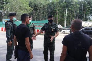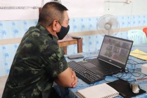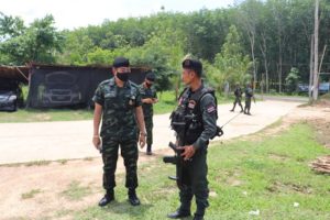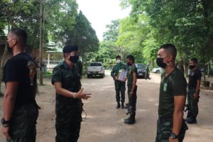 จากนั้น ไปตรวจเยี่ยม หมวดปืนเล็กที่ 3 ร้อย.2531 บ.ไทรงาม ต.นาทวี อ.นาทวี โดยเน้นย้ำมาตรการรักษาความปลอดภัยฐานปฏิบัติการ/การจัดชุดนอนนอกฐาน การจัด ชป.จรยุทธ์ควบคุมพื้นที่เพื่อป้องกันการก่อเหตุ และมาตรการป้องกันเชื้อไวรัส Covid-19 ก่อนจะเดินทางไปยัง บ.ประกอบ ม.1 ต.ประกอบ อ.นาทวี เพื่อตรวจแนวชายแดนไทย – มาเลเซีย ซึ่งอยู่ในพื้นที่รับผิดชอบของ หมวดปืนเล็กที่ 2 ร้อย.ร.5021 โดยกำชับกำลังเจ้าหน้าที่ป้องกันการลักลอบเข้า-ออกประเทศโดยผิดกฎหมายตามช่องทางธรรมชาติ รวมทั้งมาตรการป้องกันการแพร่ระบาดของเชื้อไวรัส Covid-19 อย่างเคร่งครัด พร้อมกันนี้ ได้ตรวจเยี่ยม ชป.นาปรัง ร้อย.ฉก.ตชด.431 เพื่อติดตามการปฏิบัติงานตามนโยบาย ของ ผอ.รมน.ภาค 4 ได้เน้นย้ำให้กำลังพลมีความพร้อมในการปฏิบัติงาน มีการระมัดระวังป้องกันตนเองอยู่เสมอ และป้องกันเชื้อไวรัส Covid-19 พร้อมมอบสิ่งของเพื่อเป็นขวัญกำลังใจ แก่กำลังพล ณ ชป.นาปรัง ร้อย.ฉก.ตชด.431 ต.คลองกวาง อ.นาทวี