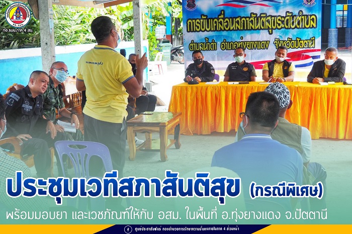 ณ หมู่ที่ 1 ตำบลน้ำดำ อำเภอทุ่งยางแดง จังหวัดปัตตานี พันเอก กฤศ ศรีเดชาสินธุ์ รองผู้บังคับหน่วยเฉพาะกิจปัตตานี เป็นผู้แทนร่วมประชุมเวทีสภาสันติสุข (กรณีพิเศษ) พื้นที่เกิดเหตุกรณีเร่งด่วน รับฟังปัญหาข้อขัดข้องและมอบแนวทางการแก้ปัญหาให้กับตำบล โดยมี นายอำเภอทุ่งยางแดง, รองผู้บังคับหน่วยเฉพาะกิจกรมทหารพรานที่ 44, ตำรวจ, ผู้นำท้องที่, ผู้นำท้องถิ่น, ผู้นำศาสนา, อาสาสมัครสาธารณสุขประจำหมู่บ้าน, และประชาชนในพื้นที่เข้าร่วมฯ