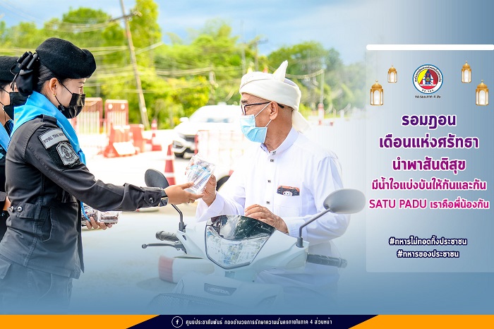 ประชาสัมพันธ์ข่าวประชาสัมพันธ์ รอมฎอน เดือนแห่งศรัทธา นำพาสันติสุข April 22, 2021 959 Share Facebook Twitter Google+ Telegram LINE มีน้ำใจแบ่งบันให้กันและกัน SATU PADU เราคือพี่น้องกัน ศูนย์ประชาสัมพันธ์ กองอำนวยการรักษาความมั่นคงภายในภาค4ส่วนหน้า