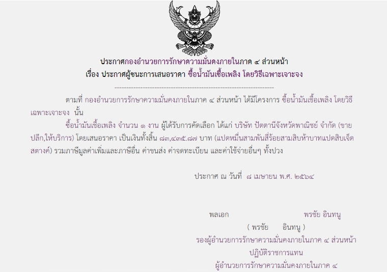 ประกาศผู้ชนะการเสนอราคา ซื้อน้ำมันเชื้อเพลิง โดยวิธีเฉพาะเจาะจง ( ๘๓,๔๓๕.๘๗ บาท )