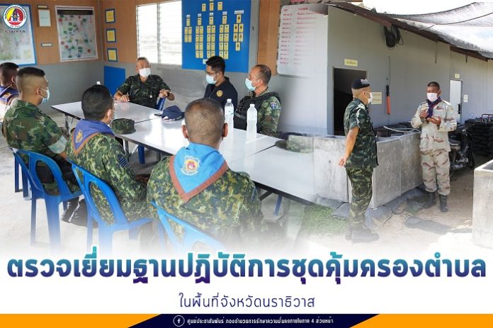 พลโท สิทธิพร มุสิกะสิน แม่ทัพน้อยที่ 4 / รองผู้อำนวยการรักษาความมั่นคงภายในภาค 4 ส่วนหน้า ได้รับมอบหมายจาก พลโท เกรียงไกร ศรีรักษ์ แม่ทัพภาคที่ 4 / ผู้อำนวยการรักษาความมั่นคงภายในภาค 4 ให้ลงพื้นที่ตรวจเยี่ยมฐานปฏิบัติการคุ้มครองตำบลในพื้นที่จังหวัดนราธิวาส โดยได้เข้าตรวจเยี่ยมฐานปฏิบัติการคุ้มครองตำบลลำภู อำเภอเมือง และฐานปฏิบัติการคุ้มครองตำบลพร่อน อำเภอตากใบ พร้อมกับมอบสิ่งของบริโภค หน้ากากอนามัยและสเปรย์แอลกอฮอล์ล้างมือ ให้แก่เจ้าหน้าที่อาสารักษาดินแดน สำหรับการตรวจเยี่ยมในครั้งนี้ เป็นการตรวจเยี่ยมโดยไม่ได้แจ้งส่วนต่าง ๆ ทราบล่วงหน้า เพื่อจะได้ทราบถึงปัญหาข้อขัดข้องที่แท้จริง