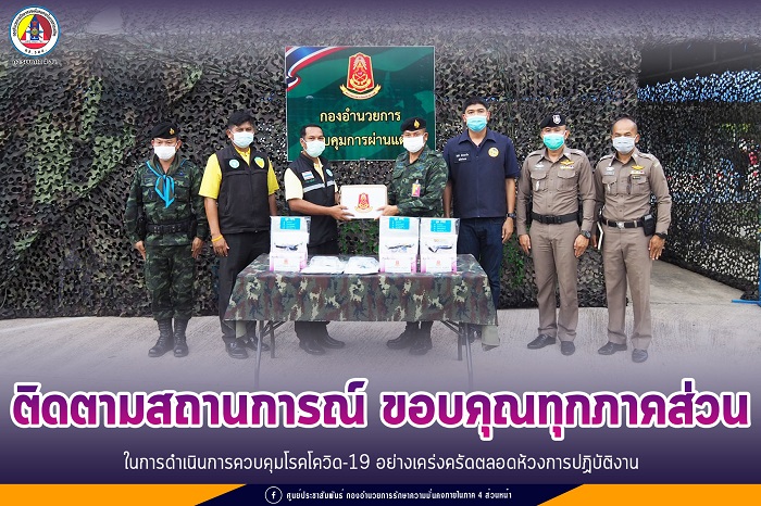 ทั้งนี้ ผู้บังคับหน่วยเฉพาะกิจนราธิวาส ได้กล่าวขอบคุณทุกภาคส่วน หน่วยงานราชการ ที่ได้ร่วมบูรณาการกำลัง ในการดำเนินการตามมาตรการควบคุมการแพร่ระบาดของเชื้อไวรัสโควิด-19 อย่างเคร่งครัดตลอดห้วงการปฏิบัติงาน พร้อมทั้งได้มอบ ชุด ppe /pe/ แว่นตาและถุงมือยาง ให้กับเจ้าหน้าที่สาธารณสุข อำเภอสุไหงโก-ลก เพื่อเป็นขวัญกำลังใจในการปฏิบัติงานต่อไป