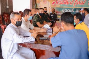 ต่อมาเวลา เวลา 14.00 น. พลตรี ศานติ ศกุนตนาค ผู้บัญชาการกองพลทหารราบที่ 5 / ผู้บังคับหน่วยเฉพาะกิจสงขลา เดินทางไปยังโรงเรียนบุสตานุดดีน ตำบลจะโหนง อำเภอจะนะ จังหวัดสงขลา เพื่อพบปะพูดคุยกับคณะทำงานพิเศษ เพื่อการสร้างความหน่วยเฉพาะกิจสงขลา ในพื้นที่ 4 อำเภอของจังหวัดสงขลา พร้อมมอบสิ่งอุปโภค-บริโภค สำหรับการละศีลอด ห้วงเดือนรอมฎอนเดือนแห่งศรัทธานำพาสันติสุข นอกจากนี้ยังได้โดยได้นำเวชภัณฑ์ป้องกันเชื้อไวรัส Covid-19 มามอบให้กับบุคลากร พร้อมทั้งได้เน้นย้ำเจ้าหน้าที่ให้ปฏิบัติตามมาตรการ การป้องกันการแพร่ระบาดของเชื้อ Covid-19 อย่างเคร่งครัด สวมหน้ากากอนามัย หมั่นทำความสะอาดมือ เพื่อสร้างความเข้าใจสร้างความตระหนักในมาตรการป้องกันการแพร่ระบาดของเชื้อไวรัส Covid-19