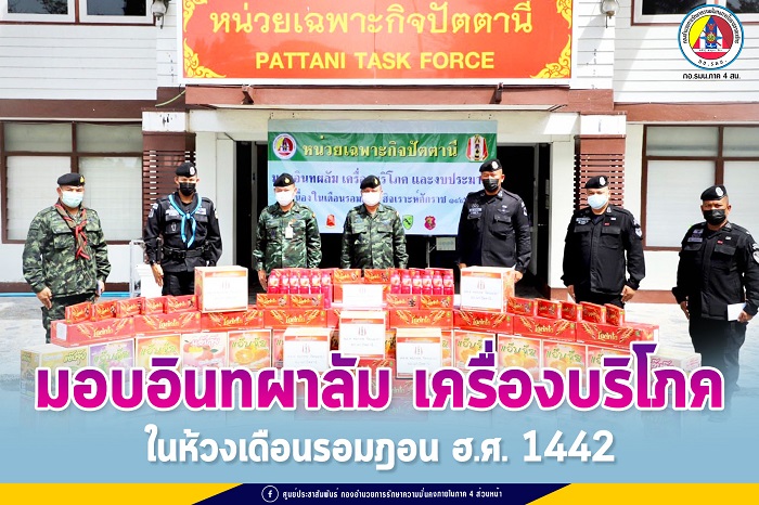 สำหรับอินทผาลัม, เครื่องบริโภค และงบประมาณการจัดกิจกรรมในห้วงเดือนรอมฎอน ได้รับการสนับสนุนจากกองอำนวยการรักษาความมั่นคงภายในภาค 4 ส่วนหน้า เพื่อให้เป็นการทำงานที่สอดคล้องตามโยบายเร่งด่วน 5 ข้อของ ผู้อำนวยการรักษาความมั่นคงภายในภาค 4 ในด้านการส่งเสริมพหุวัฒนธรรมที่เข้มแข็ง เป็นการสร้างความสัมพันธ์อันดีในการอยู่ร่วมกัน
