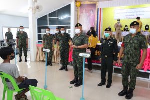 วันนี้ (26 กรกฎาคม 2563) เวลา 8:30 น. พลตรี เกรียงไกร ศรีรักษ์ รองผู้อำนวยการรักษาความมั่นคงภายในภาค 4 ส่วนหน้า พร้อมคณะ ลงพื้นที่ตรวจเยี่ยมหน่วยตรวจเลือกทหารกองเกินเข้าเป็นทหารกองประจำการ ของคณะตรวจเลือกทหารกองเกินจังหวัดยะลาคณะที่ 1 (ร.152 พัน 2) และคณะตรวจเลือกทหารกองเกินจังหวัดยะลาคณะที่ 2 (ร.152 พัน 3) ในพื้นที่อำเภอเมืองและอำเภอบันนังสตา จังหวัดยะลา โดยพื้นที่อำเภอเมือง เป็นการคัดเลือกวันแรกของตำบลสะเตงนอก มีผู้ได้รับหมายเรียกจำนวน 313 คน สำหรับอำเภอบันนังสตา เป็นวันแรกของการคัดเลือก จำนวน 4 ตำบลได้แก่ ตำบลตาเนาะปูเต๊ะ, ตำบลบาเจาะ, ตำบลเขื่อนบางลาง และตำบลถ้ำทะลุ โดยมีผู้มีหมายเรียกจำนวน 280 คน ซึ่งทั้งสองพื้นที่ได้ดำเนินการตามมาตรการป้องกันการแพร่ระบาดของโรคโควิด- 19 อย่างเคร่งครัด โดยมีการแบ่งโซนระหว่างผู้ปกครองที่มาให้กำลังใจและผู้ที่เข้ารับการตรวจเลือกทหารกองประจำการอย่างชัดเจน มีการคัดกรอง ตรวจวัดอุณหภูมิโดยเจ้าหน้าที่สาธารณสุข รวมถึงมีการเว้นระยะห่าง และให้ทุกคนสวมใส่หน้ากากอนามัย