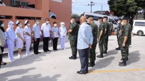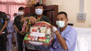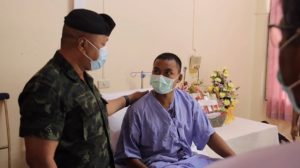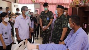 วันนี้ (29 เมษายน 2564) เวลา 10.00 น. ณ โรงพยาบาลศูนย์ยะลา อำเภอเมือง จังหวัดยะลา พลโทเกรียงไกร ศรีรักษ์ แม่ทัพภาคที่ 4 /ผู้อำนวยการรักษาความมั่นคงภายในภาค 4 และคณะ เข้าเยี่ยมปลอบขวัญและให้กำลังใจ สิบตำรวจโท อภิศักดิ์ มีเสน อายุ 29 ปี ผู้บังคับหมู่ป้องกันปราบปราม สถานีตำรวจภูธรจะกว๊ะ ซึ่งได้รับบาดเจ็บจากเหตุการณ์ คนร้ายใช้ระเบิดแสวงเครื่องไปร์บอมบ์ ขว้างใส่จุดบริการประชาชนตะโล๊ะหะลอ สถานีตำรวจภูธรจะกว๊ะ บริเวณวงเวียนตะโล๊ะหะลอ อำเภอรามัน จังหวัดยะลา เหตุเกิดเมื่อวันที่ 25 เมษายน ที่ผ่านมา พร้อมมอบกระเช้าเยี่ยมผู้ป่วย และเงินช่วยเหลือ เป็นขวัญกำลังใจในการปฏิบัติหน้าที่อย่างกล้าหาญ ในการนี้ แม่ทัพภาคที่ 4 ได้มอบอุปกรณ์ทางการแพทย์ให้แก่โรงพยาบาลศูนย์ยะลา เพื่อใช้ป้องกันการติดเชื้อจากการดูแลรักษาผู้ป่วย โดยมีนายแพทย์ อินทร์ จันแดง ผู้อำนวยการโรงพยาบาลยะลา พร้อมด้วยบุคลากรทางการแพทย์ร่วมให้การต้อนรับและรับมอบสิ่งของในครั้งนี้