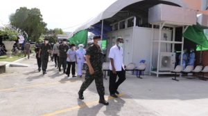 จากนั้นแม่ทัพภาคที่ 4 และคณะ เดินทางไปยังหน่วยฝึกทหารใหม่ กองพันทหารราบที่ 3 กรมทหารราบที่ 152 ตำบลเขาตูม อำเภอยะรัง จังหวัดปัตตานี ตรวจเยี่ยมให้กำลังใจกำลังพล และจิตอาสา ที่ร่วมบริจาคโลหิต เพื่อสำรองไว้ช่วยเหลือประชาชนในเหตุฉุกเฉิน และภาวะขาดแคลนโลหิตจากสถานการณ์การแพร่ระบาดของโควิด-19 พร้อมกันนี้แม่ทัพภาคที่ 4 มอบเข็มที่ระลึกให้แก่ผู้เข้าบริจาคโลหิต ตามกิจกรรมรับบริจาคโลหิตของสภากาชาดไทยในครั้งนี้อีกด้วย