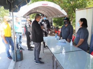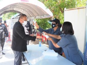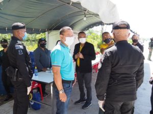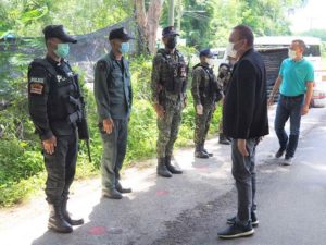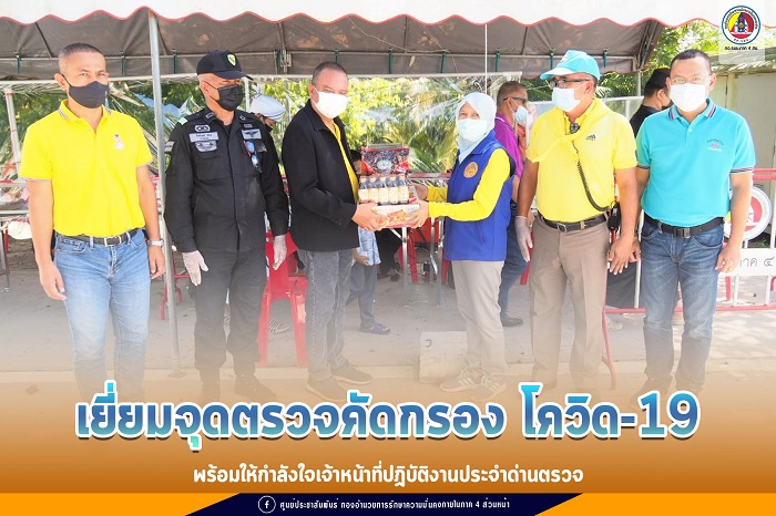 ณ ด่านตรวจคัดกรองผู้ที่เดินทางมาจากจังหวัดพื้นที่เสี่ยง อำเภอหนองจิก และอำเภอโคกโพธิ์ จังหวัดปัตตานี พลตรี คมกฤช รัตนฉายา ผู้บังคับหน่วยเฉพาะกิจปัตตานี พร้อมคณะฯ เดินทางลงพื้นที่ด่านตรวจเกาะหม้อแกง ตำบลท่ากำชำ อำเภอหนองจิก และ จุดตรวจกองร้อยทหารพรานที่ 4315 หมู่ที่ 5 บ้านคลองช้าง ตำบลคลองช้าง อำเภอโคกโพธิ์ จังหวัดปัตตานี เพื่อตรวจเยี่ยมให้กำลังใจ ชุดปฏิบัติการที่ปฏิบัติหน้าที่ประจำด่านตรวจ ซึ่งเป็นจุดคัดกรองผู้ที่เดินทางมาจากจังหวัดพื้นที่เสี่ยงก่อนเข้าสู่ จังหวัดปัตตานี