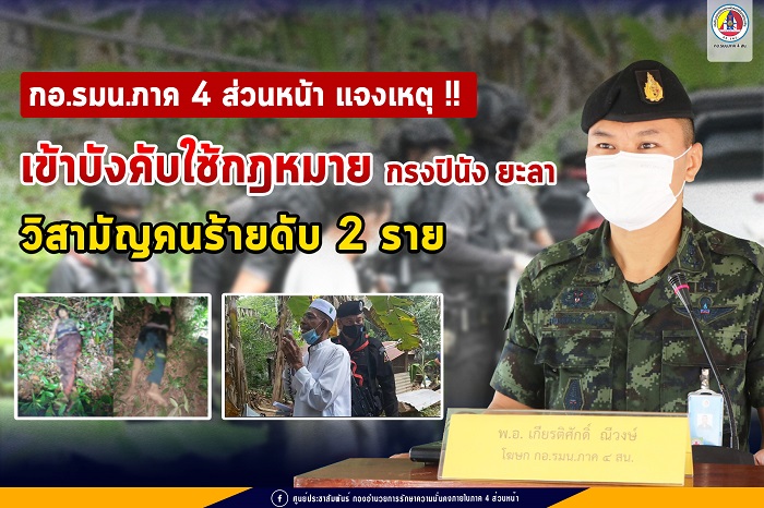 (วันที่ 5 พ.ค. 64 เวลา 09.00 น.) จากกรณีเหตุการณ์เจ้าหน้าที่สนธิกำลัง 3 ฝ่าย เข้าพิสูจน์ทราบและบังคับใช้กฎหมายกับกลุ่มผู้ก่อเหตุรุนแรงที่เข้ามาหลบซ่อนในพื้นที่ บ.บาตูบือละ ม.2 ต.สะเอะ อ.กรงปินัง จ.ยะลา และได้เกิดการยิงต่อสู้กันขึ้นเป็นเหตุให้เจ้าหน้าที่เสียชีวิต 1 นาย จับกุมผู้ก่อเหตุรุนแรงได้ 1 ราย และมีผู้ก่อเหตุรุนแรง เสียชีวิต 2 ราย เหตุเกิด เมื่อเวลา 15.40 น. วันที่ 4 พ.ค. 64 ที่ผ่านมา