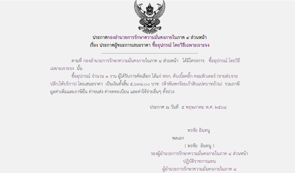 ประกาศผู้ชนะการเสนอราคา ซื้ออุปกรณ์ โดยวิธีเฉพาะเจาะจง ( ๕,๖๙๘.๐๐ บาท )