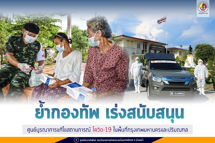 โฆษกกระทรวงกลาโหม กล่าวเพิ่มเติมว่า ภาพรวมการสนับสนุนที่สำคัญของกระทรวงกลาโหม โดยทุกเหล่าทัพ อยู่ระหว่างการประเมินสถานการณ์ กับกระทรวงสาธารณสุข เพื่อสนับสนุนจัดทำ โรงพยาบาลสนามเพิ่มให้มีเพียงพอกับปริมาณผู้ป่วยที่อาจเพิ่มมากขึ้น พร้อมทั้งได้จัดกำลังพลสายแพทย์สนับสนุนกระทรวงสาธารณสุข ในการรับและบันทึกข้อมูลผู้ป่วยที่แจ้งผ่านสายด่วน และจัดยานพาหนะรวมการ สนับสนุนการเคลื่อนย้ายผู้ป่วยที่ตกค้างในพื้นที่กรุงเทพมหานครและปริมณฑล เข้ารับการรักษาแล้ว รวม 659 ราย ขณะเดียวกัน กองทัพบก ได้เข้าไปช่วยเหลือเรือนจำกลางจังหวัดเชียงใหม่ สนับสนุนการจัดตั้ง โรงพยาบาลสนามและการบริหารจัดการทางการแพทย์เชิงรุก เพื่อควบคุมและคลี่คลายสถานการณ์การแพร่ระบาดในสถานควบคุมดังกล่าว