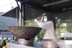 โดยแม่ทัพภาคที่ 4 ได้พบปะให้กำลังใจแก่เจ้าหน้าที่ และพี่น้องประชาชนในหมู่บ้าน โดยกล่าวว่า ภาครัฐและหน่วยงานต่าง ๆ จะไม่ทอดทิ้งพี่น้องประชาชนและขอให้เข้มแข็ง อดทน เนื่องจากพี่น้องประชาชนในหมู่บ้านถือว่าเป็นกลุ่มเสี่ยง หากไม่ทำตามกฎกติกา อาจจะนำความเดือดร้อนไปสู่สังคมโดยส่วนรวมได้ นอกจากข้าวกล่องที่นำมาแจกจ่ายให้กับพี่น้องประชาชนแล้ว ยังมีอาหารสดที่จะนำมามอบให้เพื่อไปปรุงในแต่ละบ้าน ผู้นำชุมชนและคนในชุมชนต้องร่วมมือกัน สร้างสังคมที่เข้มแข็ง ดูแลซึ่งกันและกัน รับผิดชอบต่อสังคม เจ้าหน้าที่ทางการแพทย์ อสม. ผู้นำหมู่บ้าน จะต้องสร้างความเข้าใจให้กับพี่น้องประชาชน ให้ตระหนักรู้ถึงปัจจัยเสี่ยงความสำคัญในการเฝ้าระวัง และหากพื้นที่สามารถควบคุมได้สถานการณ์ต่าง ๆ ก็จะเบาบางและกลับสู่ภาวะปกติโดยเร็ว ซึ่งอาหารต่าง ๆ ที่ปรุงจากรถครัวสนามนั้น ได้รับความมือจากพี่น้องประชาชนจิตอาสาที่เป็นมุสลิม มาดำเนินการปรุงอาหารให้ จึงมั่นใจได้ว่าพี่น้องมุสลิมสามารถจะรับประทานอาหารที่เป็น ฮาลาล ได้อย่างสบายใจ ก่อนมอบเจลแอลกอฮอล์เพื่อใช้ในการป้องกันตนเองและนำไปแจกจ่ายให้ชาวบ้านได้มีติดบ้านกันทุกครัวเรือน