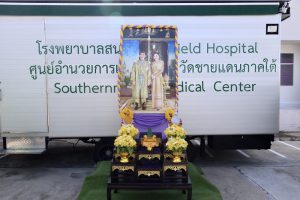 ในการนี้ พันเอก นายแพทย์ โชคชัย ขวัญพิชิต รองผู้อำนวยการศูนย์อำนวยการแพทย์จังหวัดชายแดนภาคใต้ ได้แนะนำสมรรถนะของรถพยาบาลกู้ชีพฉุกเฉินพระราชทาน, อุปกรณ์ทางการแพทย์และอุปกรณ์สื่อสาร แก่ผู้เข้าร่วมพิธี โดยศูนย์อำนวยการแพทย์จังหวัดชายแดนภาคใต้ ได้รับพระราชทานรถพยาบาลกู้ชีพฉุกเฉิน จำนวน 4 คัน เพื่อใช้ในการเคลื่อนย้ายผู้ป่วยในพื้นที่ทุรกันดาร โดยในห้วงที่ผ่านมา ได้มีการดำเนินการฝึกอบรมเจ้าหน้าที่ประจำรถ และเจ้าหน้าที่ที่ปฏิบัติงานด้านการแพทย์เพื่อให้มีความรู้ความชำนาญในการใช้รถพยาบาล และการปฐมพยาบาลเบื้องต้น ณ จุดเกิดเหตุ รวมถึงการใช้และการเชื่อมต่ออุปกรณ์สื่อสารกับโรงพยาบาล และหน่วยงานในพื้นที่พร้อมดูแลประชาชนให้เกิดประสิทธิภาพสูงสุด