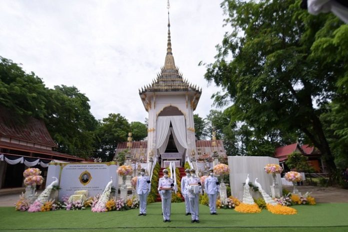 โดยพิธีพระราชทานเพลิงศพครั้งนี้จัดขึ้นอย่างสมเกียรติ เพื่อไว้อาลัยเป็นครั้งสุดท้ายให้กับ อส.ทพ.นพฤทธิ์ สุขสอน และเมื่อขบวนอัญเชิญไฟพระราชทานมาถึงบริเวณประกอบพระราชพิธี ผู้บังคับบัญชา หน่วยในพื้นที่ ข้าราชการ ทหาร ตำรวจ ตลอดจนครอบครัว และพี่น้องประชาชนในพื้นที่ตั้งแถวรอรับไฟพระราชทาน เจ้าหน้าที่อัญเชิญไฟพระราชทานขึ้นวางประจำจุดเตรียมประกอบพิธี จากนั้น พลเอกพรศักดิ์ พูลสวัสดิ์ ผู้ช่วยผู้บัญชาการทหารบก ประธานในพิธีขึ้นทอดผ้าบังสุกุล ทหารเป่าแตรนอน บรรดาข้าราชการ ประชาชน ที่มาร่วมพิธีได้ขึ้นวางดอกไม้จันทน์ ร่วมไว้อาลัยเป็นครั้งสุดท้าย แก่ทหารกล้าผู้เสียสละ สร้างความปลาบปลื้มและซาบซึ้งในพระมหากรุณาธิคุณที่ทรงมีต่อทหารกล้า ในวาระสุดท้ายของชีวิต และครอบครัว ญาติผู้เสียชีวิตอย่างหาที่สุดมิได้