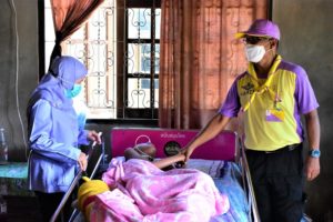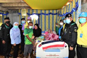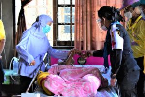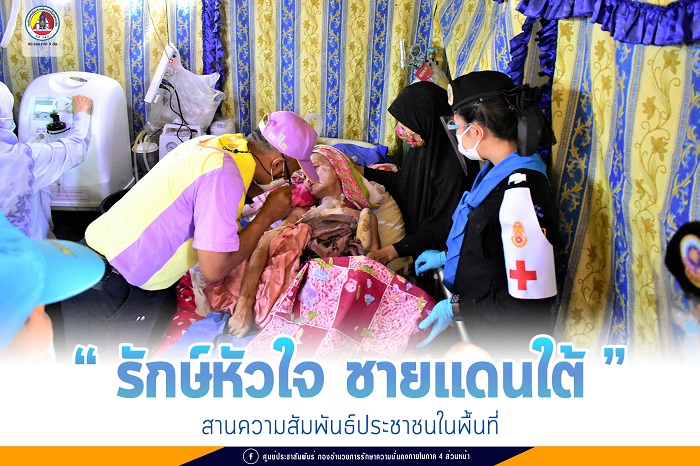 จากนั้น รองผู้อำนวยการศูนย์อำนวยการแพทย์จังหวัดชายแดนภาคใต้ และคณะ ได้เดินทางไปยังบ้านเลขที่ 58/5 บ้านอูแบ หมู่ที่ 1 ตำบลบาเจาะ อำเภอบันนังสตา จังหวัดยะลา เพื่อพบปะให้กำลังใจ พร้อมทั้งมอบเครื่องผลิตออกซิเจนให้กับ นางแวมีเนาะ อาบูดี ผู้ป่วยติดเตียง (พิการประเภท 3) โดยศูนย์อำนวยการแพทย์จังหวัดชายแดนภาคใต้ ได้จ่ายยืมเครื่องผลิตออกซิเจน เพื่อให้ผู้ป่วยติดเตียงได้มีไว้ใช้ในชีวิตประจำวัน นอกจากนี้ยังได้ลงพื้นที่ติดตามเยี่ยมเยียนประชาชนกลุ่มเปราะบาง ซึ่งเป็นผู้ป่วยติดบ้านในพื้นที่ บ้านบาเจาะฯ อีกจำนวน 2 ราย เพื่อสร้างขวัญกำลังใจในห้วงวิกฤตการระบาดของโรค COVID-19 และเป็นการสร้างความสัมพันธ์ที่ดีระหว่างเจ้าหน้าที่รัฐกับประชาชน