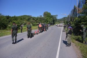 วันนี้ 10 พฤษภาคม 2564 เวลา 09.30 น. พลโท เกรียงไกร ศรีรักษ์ แม่ทัพภาคที่ 4/ ผู้อำนวยการรักษาความมั่นคงภายในภาค 4 เดินทางลงพื้นที่ตรวจเยี่ยมมอบขวัญและให้กำลังใจ พบปะพูดคุยให้นโยบายและแนวทางการปฏิบัติงานเชิงรุกในการดูแลหมู่บ้าน ชุมชน แก่เจ้าหน้าที่ ชุดคุ้มครองตำบลวังใหญ่ อำเภอสะบ้าย้อย จังหวัดสงขลา ด้วยการ พูดคุยสร้างความร่วมมือ โดยเฉพาะกำลังภาคประชาชน กำนัน ผู้ใหญ่บ้าน ชุดรักษาความปลอดภัยหมู่บ้าน อาสาสมัครรักษาหมู่บ้าน ชุดคุ้มครองตำบล มีส่วนสำคัญที่จะช่วยกระตุ้นเตือนพี่น้องประชาชน ให้ตระหนักรับรู้ สร้างความเข้มแข็งปลอดภัยให้เกิดขึ้นในพื้นที่ และให้เข้าใจสถานการณ์การทำงานของเจ้าหน้าที่รัฐมากขึ้น การทำงานและปฏิบัติภารกิจในพื้นที่จังหวัดชายแดนภาคใต้เพื่อคุ้มครองดูแลคนส่วนใหญ่นั้น จะต้องมีความพร้อม ถือระเบียบวินัยเป็นที่ตั้ง มีความระมัดระวัง ป้องกันตนเองอยู่ตลอดเวลา เมื่อพี่น้องประชาชนเห็นเจ้าหน้าที่มีความเข้มมแข็งในการปฏิบัติภารกิจ พี่น้องประชาชนเหล่านั้นก็จะเกิดความอุ่นใจ เพราะฉนั้นแล้วสิ่งสำคัญ คือเจ้าหน้าที่ทุกฐานปฏิบัติการต้องมีความตื่นตัว เฝ้าระวังฐานของตน วางกำลัง จัดเวรยาม รักษาฐานที่มั่นของตนอยู่ตลอด ไม่ให้เกิดการโจมตี และหากเกิดเหตุการณ์ไม่คาดคิดก็สามารถที่จะโต้ตอบได้อย่างทันท่วงทีโดยปราศจากความสูญเสีย ก่อนมอบสิ่งของให้กับเจ้าหน้าที่เพื่อใช้ในการป้องกันตนเองจากการแพร่ระบาดของเชื้อไวรัสโควิค 19