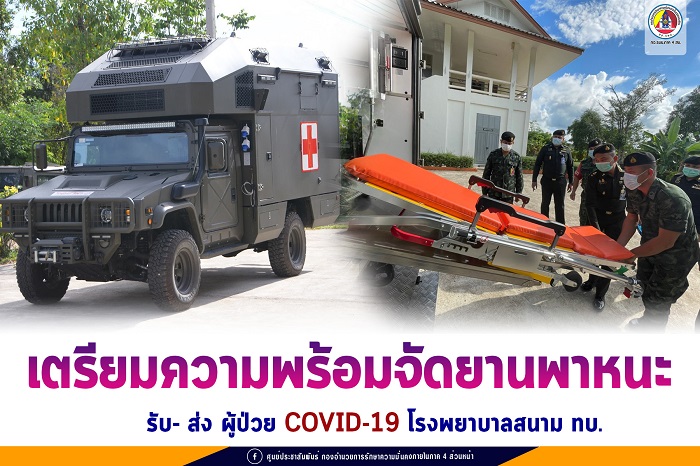 ทั้งนี้ ผู้บัญชาการกองพลทหารราบที่15 สั่งการให้ หน่วยกองพันเสนารักษ์ กรมสนับสนุน กองพลทหารราบที่ 15 ดำเนินการเตรียมความพร้อมจัดยานพาหนะ รถตู้พยาบาล สำหรับใช้ในการเคลื่อนย้าย รับ- ส่ง ผู้ป่วย COVID-19 โดยได้เน้นย้ำการปฏิบัติงานในการ สนับสนุนการเคลื่อนย้ายผู้ติดเชื้อ COVID-19 ขอให้เป็นไปตามนโยบายของ นายกรัฐมนตรี และ รัฐมนตรีว่าการกระทรวงกลาโหม โดยให้เตรียมความพร้อมเจ้าหน้าที่และยานพาหนะให้พร้อมปฏิบัติงานตอบสนองการสนับสนุนได้ในทันที และกำชับให้อบรมเจ้าหน้าที่ให้ปฏิบัติงานด้วยความระมัดระวังและไม่ประมาท เป็นไปตามมาตรการป้องกันและการขนย้ายผู้ป่วยที่ทางกระทรวงสาธารณสุขกำหนด โดยเป็นไปตามนโยบายของกระทรวงกลาโหม และเจตนารมย์ของผู้บัญชาการทหารบกที่ว่า “กองทัพบกต้องเสียสละ ทุ่มเทศักยภาพในทุกด้าน และร่วมมือกับทุกภาคส่วนในการดูแลประชาชนให้ผ่านพ้นวิกฤติโควิด-19 ได้อย่างปลอดภัยต่อไป”