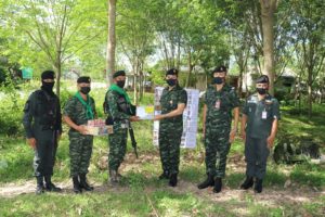 นอกจากนี้ พลตรี ศานติ ศกุนตนาค ผู้บัญชาการกองพลทหารราบที่ 5 / ผู้บังคับหน่วยเฉพาะกิจสงขลา ยังได้ลงพื้นที่บริเวณชุมชนรอบฐานปฏิบัติการหน่วยเฉพาะกิจสงขลา บ้านนิคมเทพา หมู่ที่ 3 ตำบลท่ามวง อำเภอเทพา จังหวัดสงขลา เพื่อพบปะพัฒนาสัมพันธ์กับพี่น้องประชาชนรอบฐานปฏิบัติการหน่วยเฉพาะกิจสงขลา ในการรับทราบปัญหาข้อขัดข้องต่างๆ อีกทั้งยังได้ประชาสัมพันธ์ เรื่อง “การแพร่ระบาด และวิธีป้องกันเชื้อไวรัส Covid-19” พร้อมมอบเวชภัณฑ์ป้องกันเชื้อไวรัส Covid-19
