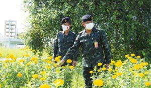 พลตรี ไพศาล หนูสังข์ ผู้บัญชาการกองพลทหารราบที่ 15 /ผู้อำนวยการศูนย์ประสานงานโครงการอันเนื่องมาจากพระราชดำริ พร้อมคณะ ลงพื้นเข้าตรวจเยี่ยมโครงการฟาร์มตัวอย่างบ้านลุตง ในสมเด็จพระนางเจ้าฯ พระบรมราชินีนาถ พระบรมราชชนนีพันปีหลวง ตำบลแม่ลาน อำเภอแม่ลาน จังหวัดปัตตานี ซึ่งอยู่ในความรับผิดชอบ ของสำนักงานพัฒนาที่ดินจังหวัดปัตตานี เพื่อศึกษา เรียนรู้ พร้อมทั้งบูรณาการ “การปลูกดาวเรือง ไม้ตัดดอกเศรษฐกิจ” เพื่อจะนำความรู้ที่ได้มาพัฒนา ต่อยอด มาปรับใช้ภายในโครงการฟาร์มตัวอย่าง ตามพระราชเสาวนีย์ ของสมเด็จพระนางเจ้าสิริกิติ์ พระบรมราชินีนาถ พระบรมราชชนนีพันปีหลวง ควบคู่กับหลักปรัชญาเศรษฐกิจพอเพียง ให้สมาชิกฟาร์มฯ มีรายได้ จนสามารถเลี้ยงตนเอง และครอบครัวได้