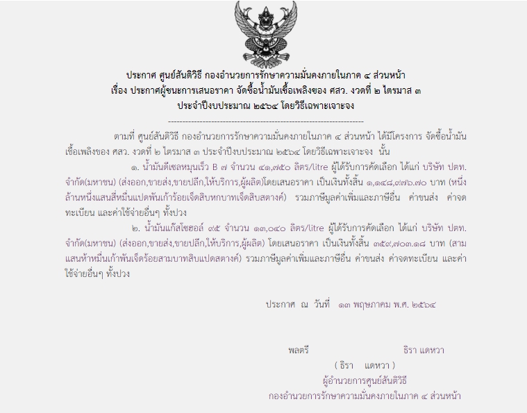 จัดซื้อ จัดจ้างประกาศผู้ชนะการเสนอราคา ประกาศผู้ชนะการเสนอราคา จัเซื้อน้ำมันเชื้อเพลิงของ ศสว.งวดที่ ๒ ไตรมาส ๓ประจำปีงบประมาณ ๒๕๖๔ โดยวิธีเฉพาะเจาะจง ( ๑,๑๔๘,๙๗๖.๗๐ บาท )( ๓๕๙,๗๐๓.๑๘ ) May 13, 2021 573 Share Facebook Twitter Google+ Telegram LINE ศูนย์สันติวิธี กอ.รมน.ภาค ๔ สน.