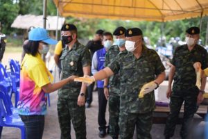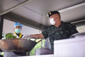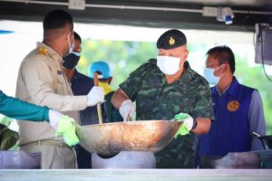 โดยแม่ทัพภาคที่ 4 ได้ร่วมประกอบอาหาร บรรจุลงยังกล่องใส่ท้ายรถ Army เดลิเวอรี่ ก่อนที่แม่ทัพภาคที่ 4 ได้โดยสารไปกับรถที่บรรจุของ นำอาหาร น้ำดื่ม ไปแจกจ่ายแก่พี่น้องประชาชนด้วยตนเอง ซึ่งก็ได้ตรวจเยี่ยมด่านจุดคัดกรองของหมู่บ้าน เพื่อให้กำลังใจแก่เจ้าหน้าที่ผู้ปฏิบัติงาน เน้นย้ำการปฏิบัติงานที่ต้องคำนึงถึงความปลอดภัย รู้จักป้องกันตนเอง และเป็นที่พึ่งของประชาชนในทุกโอกาส