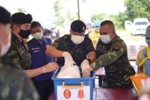 โดยแม่ทัพภาคที่ 4 ได้ร่วมประกอบอาหาร พร้อมทั้งบรรจุสิ่งของลงในกล่อง Army เดลิเวอรี่ เพื่อที่จะให้น้อง ๆ ทหารนำไปแจกจ่ายให้กับพี่น้องประชาชนในหมู่บ้าน ซึ่งนอกจากจะเป็นข้าวกล่อง น้ำดื่มแล้ว ก็ยังมีเวชภัณฑ์อุปกรณ์ทางการแพทย์ที่ใช้ในการป้องกันตนเองในแต่ละครัวเรือนอีกด้วย โดยเมื่อทำการบรรจุสิ่งของลงในกล่อง Army เดลิเวอรี่เป็นที่เรียบร้อย แม่ทัพภาคที่ 4 จึงได้ทำการปล่อยขบวนรถกว่า 20 คัน นำข้าวกล่องและสิ่งของจำเป็นต่าง ๆ ไปแจกจ่ายให้กับพี่น้องประชาชนโดยทันที