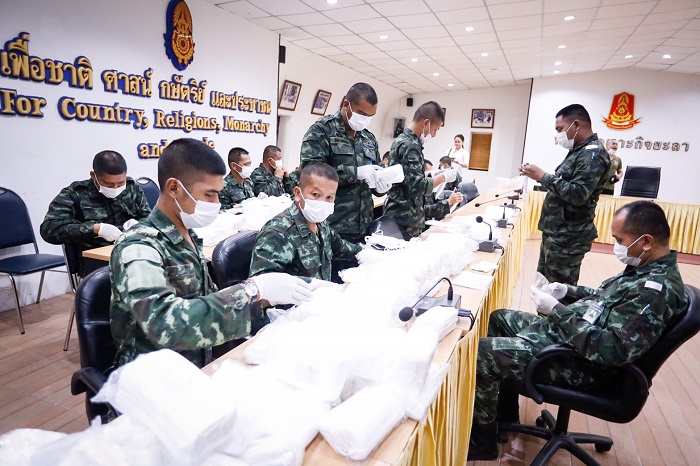 พลตรี อุทิศ อนันตนานนท์ ผู้บังคับหน่วยเฉพาะกิจยะลา / หัวหน้าจิตอาสาภาค 4 พร้อมด้วย กำลังพลหน่วยเฉพาะกิจยะลา ร่วมดำเนินการ บรรจุหน้ากากอนามัยที่สั่งซื้อจำนวน 20,000 ชิ้น ใส่ถุงสะอาด เพื่อแบ่งมอบให้กับประชาชนที่เดินทางสัญจรไปมา ผ่านด่านคัดกรอง ในพื้นที่จังหวัดยะลา เพื่อมอบให้เป็นของขวัญวันฮารีรายอ และรณรงค์ให้ร่วมใส่หน้ากากอนามัย เพื่อป้องกันการติดเชื้อ