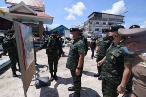 วันนี้ 15 พฤษภาคม 2564 พลโท เกรียงไกร ศรีรักษ์ แม่ทัพภาคที่ 4 / ผู้อำนวยการศูนย์ปฏิบัติการกองทัพภาคที่ 4 พร้อมด้วย พลตรี ศานติ ศกุนตนาค ผู้บัญชาการกองพลทหารราบที่5/ผู้บัญชาการกองกำลังเทพสตรี ,พลตรีเสนีย์ ศรีหิรัญ ผู้บัญชาการมณฑลทหารบกที่ 46 เดินทางขึ้นเฮลิคอปเตอร์ ลาดตระเวนสำรวจเส้นทางขอบเขตแนวชายแดนประเทศ ไทย-เมียนมาร์ เปิดแผนวางกำลังคุมเข้มตลอดแนวชายแดน ก่อนเยี่ยมให้กำลังใจและมอบนโยบายการปฏิบัติงานแก่เจ้าหน้าที่ชุดปฏิบัติการจรยุทธ ชุดเฝ้าตรวจชายแดน ฝั่งจังหวัดระนอง ชุมพร เพื่อการเฝ้าระวังป้องกันการแพร่ระบาดของเชื้อไวรัส covid-19 อย่างเข้มข้น ด้วยการประสานการทำงานกับ ฝ่ายปกครองในพื้นที่ ป้องการลักลอบเข้าเมืองโดยผิดกฎหมาย โดยเฉพาะชายแดนติดเมียนมาและมาเลเซีย ที่จำเป็นต้องเฝ้าระวังคัดกรองและควบคุมโรคอย่างจริงจังจากสถานการณ์การแพร่ระบาดของโควิด-19 ที่ยังคงรุนแรง บวกกับเชื้อสายพันธุ์ใหม่ที่อาจเข้ามาแพร่ระบาดวงกว้างในประเทศไทย