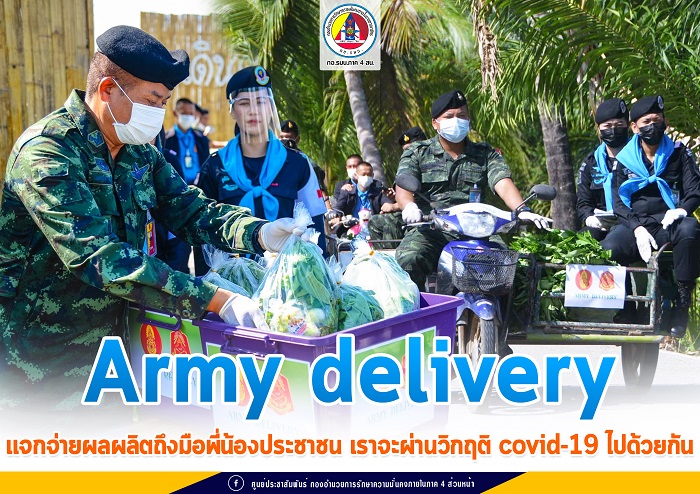 ที่ลานหน้าโครงการทหารพันธุ์ดี กองพันทหารราบที่ 3 กรมทหารราบที่ 151 ค่ายกรมหลวงนราธิวาสราชนครินทร์ อำเภอเจาะไอร้อง จังหวัดนราธิวาส พลตรี ไพศาล หนูสังข์ ผู้บัญชาการกองพลทหารราบที่15 / ผู้บังคับหน่วยเฉพาะกิจนราธิวาส พร้อมด้วย ผู้นำท้องถิ่น ,ผู้นำชุมชน , ผู้ใหญ่บ้าน และกำลังพล เข้าร่วมกิจกรรม Army delivery บุกถึงบ้าน ส่งต่อความห่วงใย แจกจ่ายผลผลิตทางการเกษตร โครงการทหารพันธุ์ดี ถึงมือพี่น้องประชาชนในพื้นที่ เพื่อเป็นการบรรเทาทุกข์ เข้าไปดูแล ให้การช่วยเหลือ พี่น้องประชาชนไทยพุทธ และไทยมุสลิมในพื้นที่ ที่ได้รับผลกระทบจากสถานการณ์ไวรัสโรค covid-19 เป็นการปฏิบัติตามนโยบายข้อสั่งการของ พลเอก ณรงค์พันธ์ จิตต์แก้วแท้ ผู้บัญชาการทหารบก และ พลโท เกรียงไกร ศรีรักษ์ แม่ทัพภาคที่ 4 /ผู้อำนวยการรักษาความมั่นคงภายในภาค 4 โดยให้หน่วยขึ้นตรงกองทัพบก ดำเนินการดูแล ให้ความช่วยเหลือประชาชนที่ได้รับผลกระทบจากสถานการณ์ไวรัสโรค covid-19 อย่างต่อเนื่อง