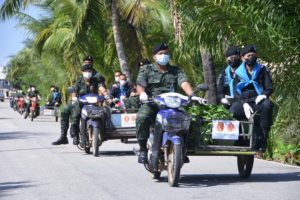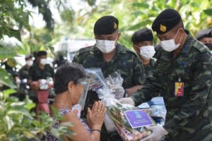 โดย ผู้บัญชาการกองพลทหารราบที่15 ได้ลงพื้นที่แปลงเกษตร โครงการทหารพันธุ์ดี ของกองพันทหารราบที่ 3 กรมทหารราบที่ 151 ร่วมกับ กำลังพลในการเก็บผลผลิตทางการเกษตร พร้อมทั้งแพคบรรจุภัณฑ์ และนำไปแจกจ่ายให้กับพี่น้องประชาชนที่ได้รับความเดือดร้อน ในพื้นที่ห่างไกลพื้นที่เมือง และไม่สามารถเดินทางออกมารับความช่วยเหลือได้ ได้แก่ กลุ่มเปราะบาง ผู้สูงอายุ ผู้พิการ ผู้ยากไร้ พร้อมทั้งมอบหน้ากากอนามัย และเจลแอลกอฮอล์ เพื่อใช้ในการป้องกันตนเองในแต่ละครัวเรือน ตลอดจัดชุดแพทย์เคลื่อนที่ ให้บริการพี่น้องประชาชนในพื้นที่ บ้านปิเหล็ง หมู่ที่ 6 และ หมู่ที่ 7 ตำบลมะรือโบออก อำเภอเจาะไอร้อง จังหวัดนราธิวาส ซึ่งมีประชากรอาศัยอยู่กว่า 340 ครัวเรือน ภายใต้สังคมพหุวัฒนธรรม ทั้งพี่น้องไทยพุทธ และไทยมุสลิม โดย พลตรีไพศาล หนูสังข์ ได้ทำการปล่อยขบวนรถกว่า 20 คัน และนำผลผลิตทางการเกษตร โครงการทหารพันธุ์ดี และ เวชภัณฑ์อุปกรณ์ทางการแพทย์ ไปแจกจ่ายให้กับพี่น้องประชาชนโดยทันที