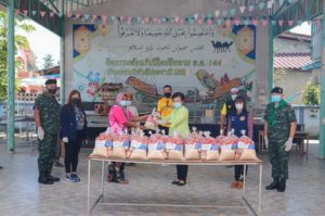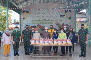 พันเอก ยุทธนาม เพชรม่วง รองผู้บังคับหน่วยเฉพาะกิจสงขลา ร่วมกับ ชมรมพัฒนาสัมพันธ์ผู้บริหารจังหวัดชายแดนใต้ ลงพื้นที่มอบถุงยังชีพให้กับประชาชนที่ได้รับผลกระทบจากสถานการณ์ COVID-19 ในพื้นที่ ตำบลปากบาง อำเภอเทพา จังหวัดสงขลา จำนวน 200 ถุง เพื่อช่วยเหลือและให้กำลังประชาชนที่ได้รับความเดือดร้อนในช่วงสถานการณ์การแพร่ระบาดโรค COVID-19 พร้อมทั้งได้ประชาสัมพันธ์มาตรการป้องกันการแพร่ระบาดโรค COVID-19 อีกด้วย