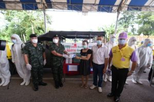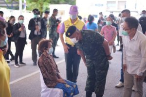 พลโท เกรียงไกร ศรีรักษ์ แม่ทัพภาคที่ 4 /ผู้อำนวยการรักษาความมั่นคงภายในภาค 4 กล่าวว่า ในวันนี้เดินทางมาเยี่ยมเยียน ให้กำลังใจพี่น้องประชาชน ในพื้นที่ของอำเภอสะเดา จังหวัดสงขลา ซึ่งได้รับผลกระทบจากการแพร่ระบาดของเชื้อไวรัส covid-19 รวมทั้งมาให้กำลังใจเจ้าหน้าที่ที่ปฏิบัติงาน เน้นย้ำนโยบายการให้ความช่วยเหลือพี่น้องประชาชน และมาตรการป้องกันตนเองของเจ้าหน้าที่ โดยผู้บัญชาการทหารบกได้มีนโยบาย ในการดูแล ช่วยเหลือ และสนับสนุน ทั้งยุทโธปกรณ์ และกำลังพล ให้พร้อมรับมือต่อสถานการณ์การแพร่ระบาดของเชื้อไวรัส covid-19 ที่เกิดขึ้นให้กับทางจังหวัดอย่างต่อเนื่อง จนกว่าสถานการณ์จะคลี่คลาย รวมทั้งได้จัดตั้งโรงพยาบาลสนามขึ้นในหน่วยทหาร เพื่อรองรับผู้ติดเชื้อ สำหรับวันนี้เป็นภารกิจของการดูแลช่วยเหลือพี่น้องประชาชนอีกหนึ่งภารกิจ โดยได้จัดบริการรถครัวสนาม จัดทำอาหารปรุงสุกจากผลิตผลของโครงการทหารพันธุ์ดี และบางส่วนนำมาแจกจ่ายให้กับพี่น้องประชาชน ด้วย เราจะเห็นถึงความร่วมมือร่วมแรงร่วมใจของคนไทย ไม่ว่าจะเกิดวิกฤตการณ์ใด คนไทยจะไม่ทิ้งกัน อย่างไรก็ตามทางกองทัพบก พร้อมที่จะดูแล และสนับสนุน ในทุกๆด้านอย่างต่อเนื่อง ฝากส่งกำลังใจไปยังพี่น้องประชาชนในการเดินหน้า เพื่อให้ผ่านพ้นวิกฤตการแพร่ระบาดของเชื้อไวรัส covid-19 ไปพร้อมกัน ให้ทุกคนเชื่อมั่น และมั่นใจ ในมาตรการที่ทางรัฐบาลได้เตรียมการไว้ให้กับพี่น้องประชาชน ทั้งมาตรการป้องกัน ควบคุมต่างๆ รวมทั้งการฉีดวัคซีน “หยุดเชื้อ เพื่อชาติ เพื่อคนที่เรารัก” จับมือผ่านพ้นวิกฤตินี้ไปด้วยกัน