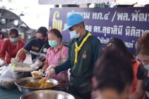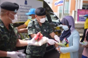 วันนี้ 20 พฤษภาคม 2564 เวลา 10.30 น. ที่สำนักงานเทศบาลตำบลคลองแงะ อำเภอสะเดา จังหวัดสงขลา พลโท เกรียงไกร ศรีรักษ์ แม่ทัพภาคที่ 4 /ผู้อำนวยการรักษาความมั่นคงภายในภาค 4 ลงพื้นที่ พบปะ เยี่ยมเยียนให้กำลังใจพี่น้องประชาชนที่ได้รับผลกระทบจากสถานการณ์การแพร่ระบาดของเชื้อไวรัส covid-19 โดยได้ร่วมประกอบอาหารปรุงสุก จากรถครัวสนาม ที่จัดโดยกองพลพัฒนาที่ 4 และได้รับการสนับสนุน วัตถุดิบ สิ่งของอุปกรณ์ ในการนำมาประกอบอาหาร จากดร.สุธาสินี นิติสาครินทร์ กรรมการผู้จัดการ บริษัทฟิล์ม มาสเตอร์จำกัด นอกจากนี้ได้นำผลผลิตทางการเกษตรจากโครงการทหารพันธุ์ดี กองพลพัฒนาที่ 4 ค่ายรัตนพล มาประกอบอาหาร และแจกจ่ายเป็นวัตถุดิบสด เพื่อเป็นการบรรเทาความเดือดร้อนให้กับผู้ที่ได้รับผลกระทบการแพร่ระบาดของเชื้อไวรัส covid-19 ทั้งนี้ได้รับความร่วมมือจาก ภาครัฐ และเอกชน ผู้ประกอบการ และนักธุรกิจในพื้นที่ให้การสนับสนุน โดยมี พลตรี ธิรา แดหวา รองผู้อำนวยการรักษาความมั่นคงภายในภาค 4 ส่วนหน้า พร้อมด้วย พลตรี สิรภพ ศุภวานิช ผู้บัญชาการกองพลพัฒนาที่ 4 และส่วนราชการหน่วยงานในพื้นที่ร่วมในครั้งนี้