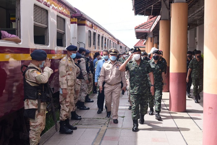 วันนี้ 20 พฤษภาคม 2564 เวลา 10.00 น. พลโท เกรียงไกร ศรีรักษ์ แม่ทัพภาคที่ 4 / ผู้อำนวยการรักษาความมั่นคงภายในภาค 4 นำทีมผู้บังคับหน่วยเฉพาะกิจ ยะลา, สงขลา, ปัตตานี และนราธิวาส ตลอดจนผู้บังคับหน่วยในพื้นที่ ขึ้นขบวนรถไฟสายกรุงเทพ – สุไหงโก-ลก แถลงแผนรักษาความปลอดภัยเส้นทางรถไฟสายจังหวัดชายแดนภาคใต้ และ 4 อำเภอของจังหวัดสงขลา