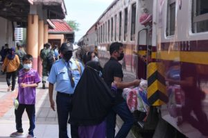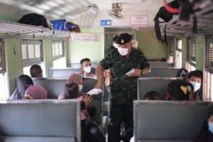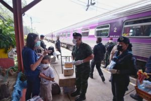 ต้องขอความร่วมมือพี่น้องประชาชนที่ใช้บริการรถไฟ ปฏิบัติตามขั้นตอนของการรถไฟอย่างเคร่งครัด ที่ให้ผู้โดยสารทุกคนสวมหน้ากากอนามัย วัดอุณหภูมิร่างกาย เว้นระยะห่าง เป็นไปตามที่ ศบค. กำหนด และหากพบสิ่งผิดปกติในระหว่างการเดินทางให้รีบแจ้งเจ้าหน้าที่โดยด่วน”