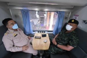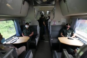 เริ่มต้นเดินทางจากสถานีรถไฟยะลา ปลายทางที่อำเภอสุไหงโก-ลก จังหวัดนราธิวาส โดยมี นายพงษ์ศักดิ์ บุญสุข ผู้อำนวยการศูนย์ปฏิบัติการเดินรถภาค 4 ที่หาดใหญ่ สอบเจ้าหน้าที่การรถไฟแห่งประเทศไทยประจำเส้นทางการเดินรถในพื้นที่จังหวัดชายแดนภาคใต้ให้การต้อนรับ ร่วมขบวน หารือรับนโยบายรักษาความปลอดภัยเส้นทางเดินรถ โดยระหว่างเส้นทางขบวนรถไฟ เมื่อมาถึงยังสถานีต่าง ๆ แม่ทัพภาคที่ 4 ได้ลงพบปะเยี่ยมเยียนให้กำลังใจเจ้าหน้าที่ และพูดคุยกับพี่น้องประชาชนที่มารอใช้บริการโดยสารรถไฟ สร้างความเชื่อมั่นใจ อุ่นใจแก่พี่น้องประชาชน และยังใช้โอกาสนี้สร้างการรับรู้ให้แก่ประชาชนถึงสถานการณ์การแพร่ระบาดของเชื้อไวรัส covid-19 ที่ทุกคนจะต้องให้ความสำคัญในการป้องกันตนเองทุกสถานที่ ทุกโอกาส เพื่อร่วมกันหยุดการกระจายของเชื้อ โดยได้มอบสิ่งของ อุปกรณ์ในการป้องกันตนเองให้แก่เจ้าหน้าที่ และผู้โดยสารที่มารอใช้บริการรถไฟยังสถานีต่าง ๆ อีกด้วย