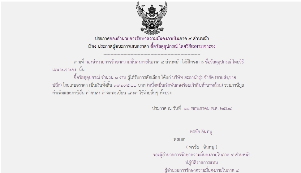 ประกาศผู้ชนะการเสนอราคา ซื้อวัสดุอุปกรณ์ โดยวิธีเฉพาะเจาะจง ( ๑๗,๒๙๕.๐๐ บาท )