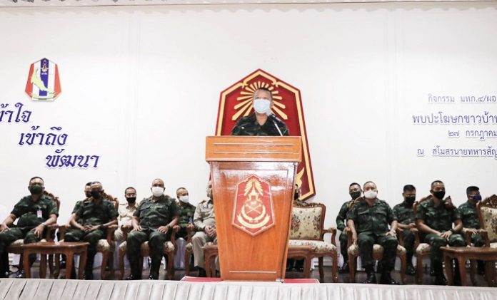 เมื่อวันที่ 27 ก.ค.63 เวลา 11.00 น. พลโท พรศักดิ์ พูลสวัสดิ์ แม่ทัพภาคที่ 4 / ผู้อำนวยการรักษาความมั่นคงภายในภาค 4 เป็นประธานในกิจกรรมการประชุม “พบปะโฆษกชาวบ้าน เพื่อขับเคลื่อนนโยบายการเสริมสร้างสันติสุขในพื้นที่จังหวัดชายแดนภาคใต้” ณ สโมสรนายทหารสัญญาบัตร กองพลทหารราบที่ 15 ค่ายสมเด็จพระสุริโยทัย อ.หนองจิก จ.ปัตตานี โดยมี คณะผู้บังคับบัญชา, หน่วยงานที่เกี่ยวข้อง และโฆษกชาวบ้านในพื้นที่จังหวัดชายแดนภาคใต้ และ 4 อำเภอของจังหวัดสงขลา จำนวน 300 คน เข้าร่วมกิจกรรมโดยพร้อมเพียง