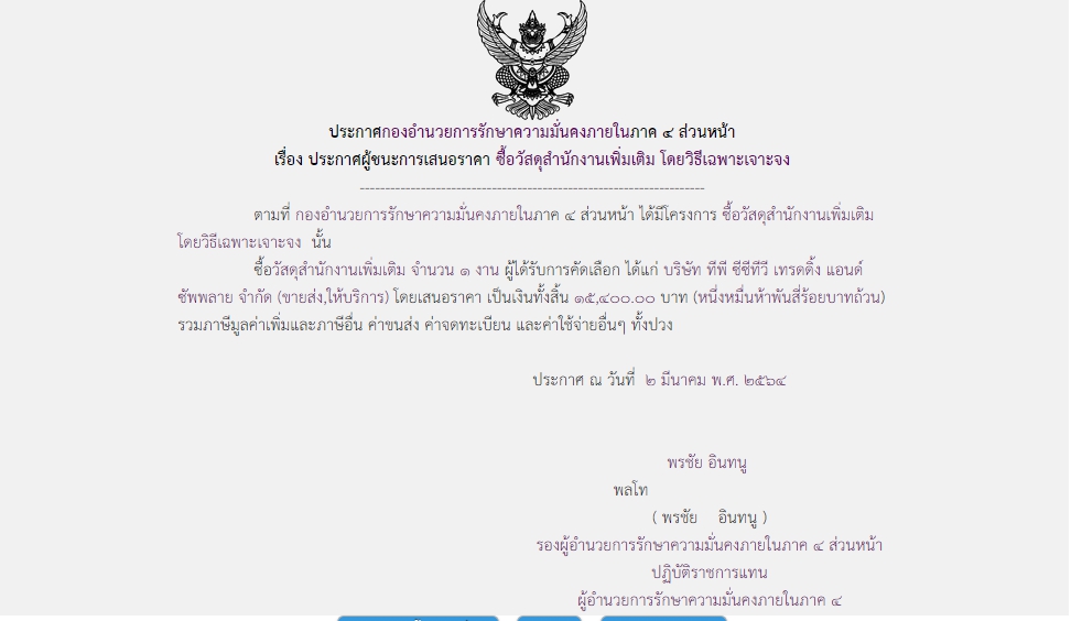 ประกาศผู้ชนะการเสนอราคา ซื้อวัสดุสำรักงานเพิ่มเติม โดยวิธีเฉพาะเจาะจง ( ๑๕,๔๐๐.๐๐ บาท )